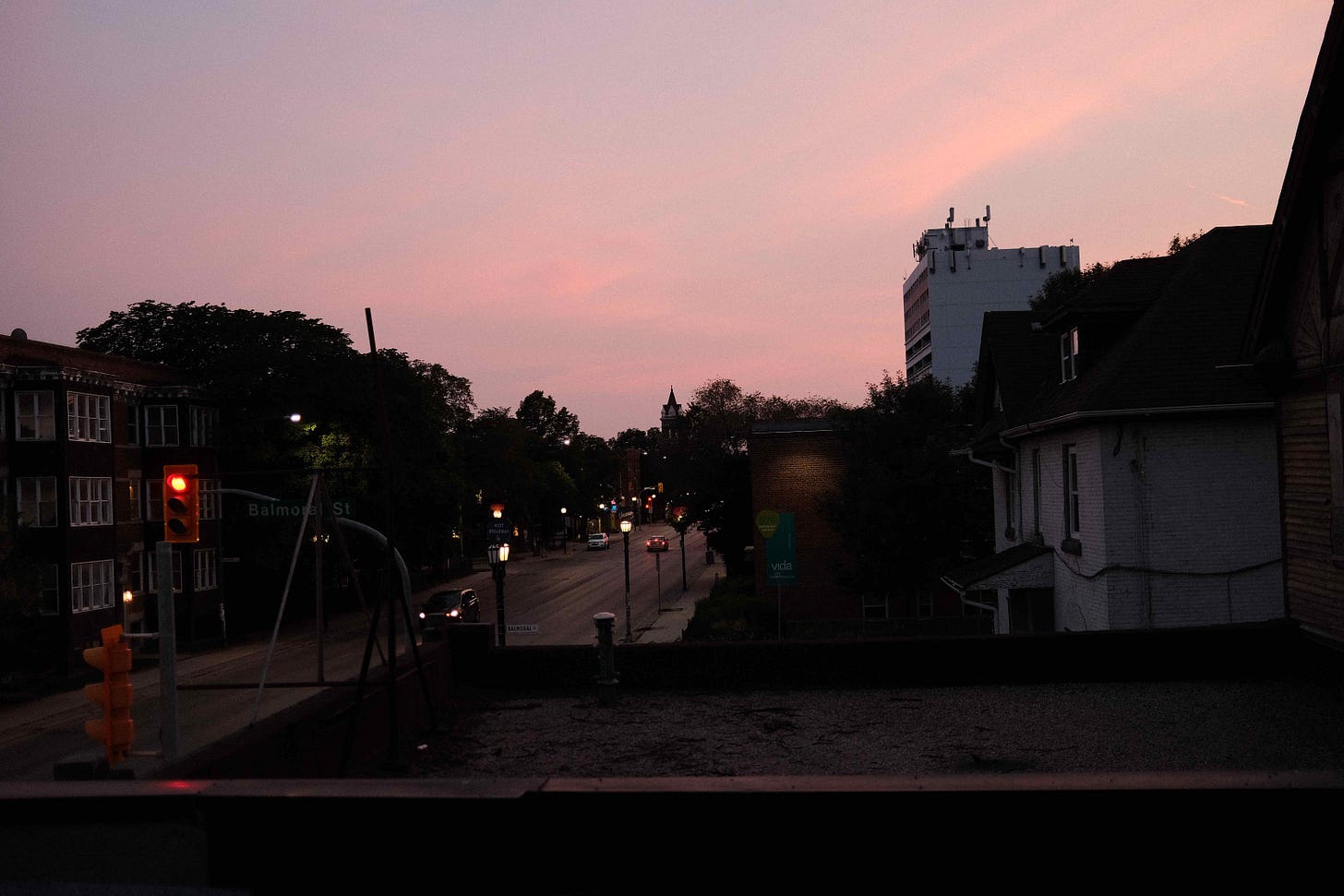 View from a good friend’s home. Strange to live above Canada Vacuum but it gives you a great view looking down Broadway at sunset.