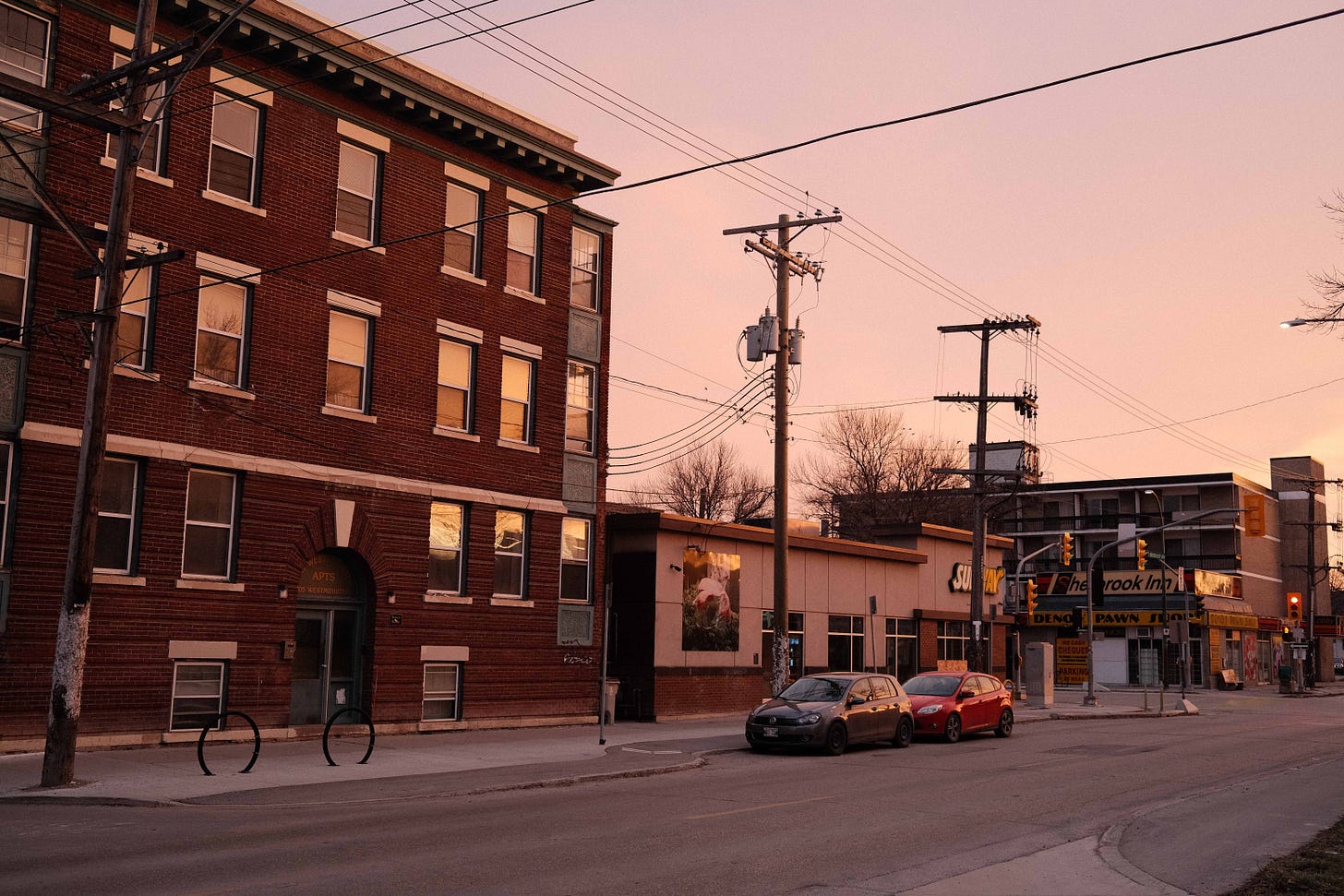 I'm so glad you're posting on here again Michael! It's funny how much we've haunted the same geographies in Winnipeg but never crossed paths until this year. I found out earlier today that last month was the first snow-free November in Edmonton since 1928! It got up to 13 while I was in Winnipeg and it's supposed to get up to 7 on Tuesday. But even in Winnipeg it was weird -- not as extreme but not like a normal Prairie November nonetheless. It's funny you mention imagining light rail for Winnipeg in the last photo - all I was thinking about when looking at some of these photos was how much Winnipeg looks like a real city, but doesn't really act like one. It has the bones, the vibe, the aesthetic in a way that Edmonton mostly doesn't. Edmonton is like when they try to upgrade a '70s suburb to a transit oriented development. It's Burnaby in the '90s on the Prairie. But at least it's trying, I suppose. Also your oma sounds like a badass!