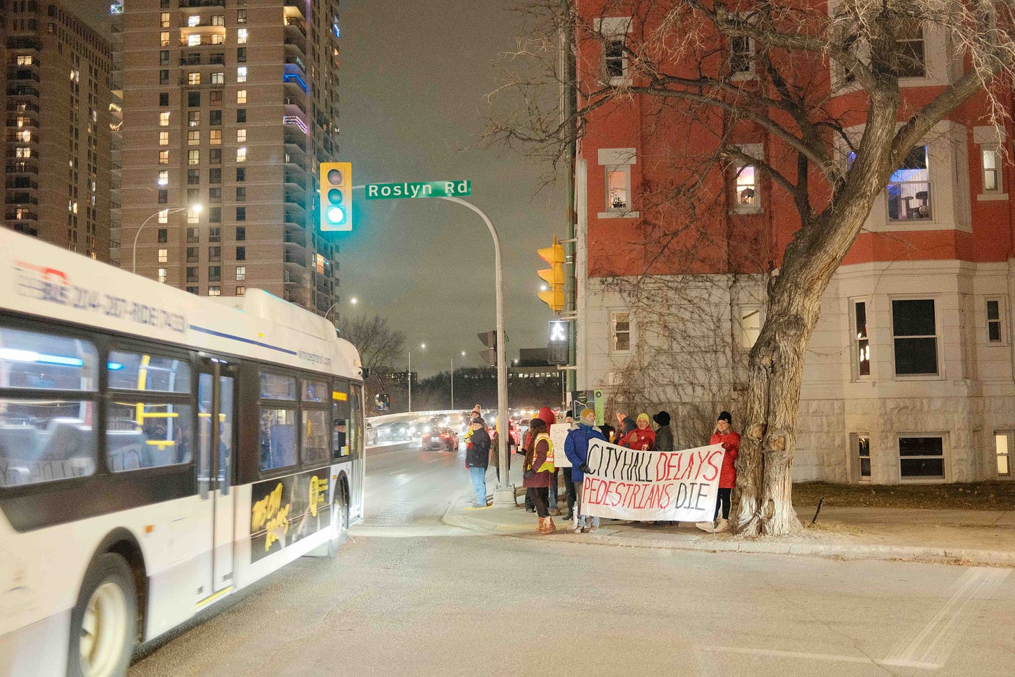 This one was for Rosalie Tennison, a Winnipeg author who was hit at the corner of Osborne and Roslyn, later dying in hospital. She was one of two people killed by cars just this past month.